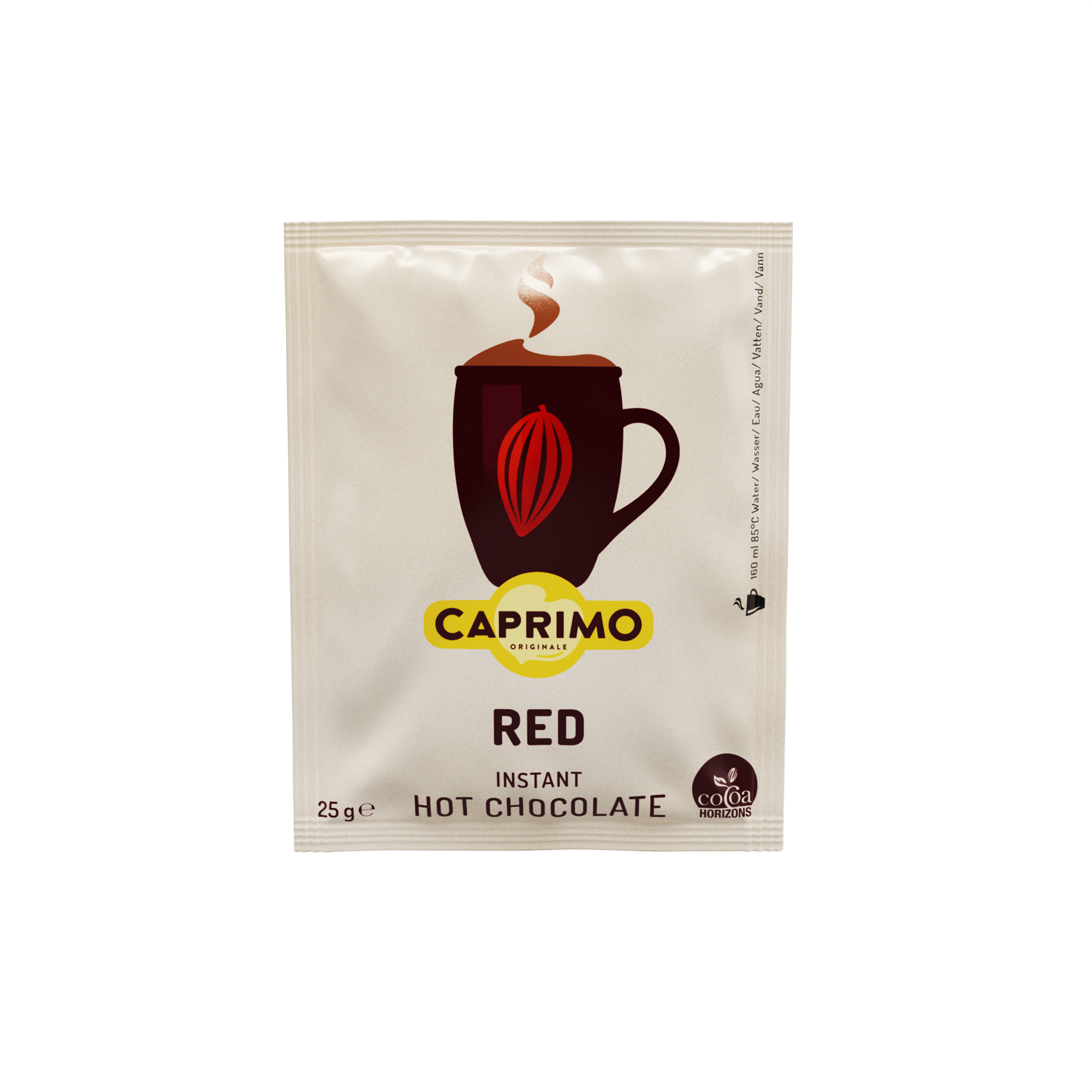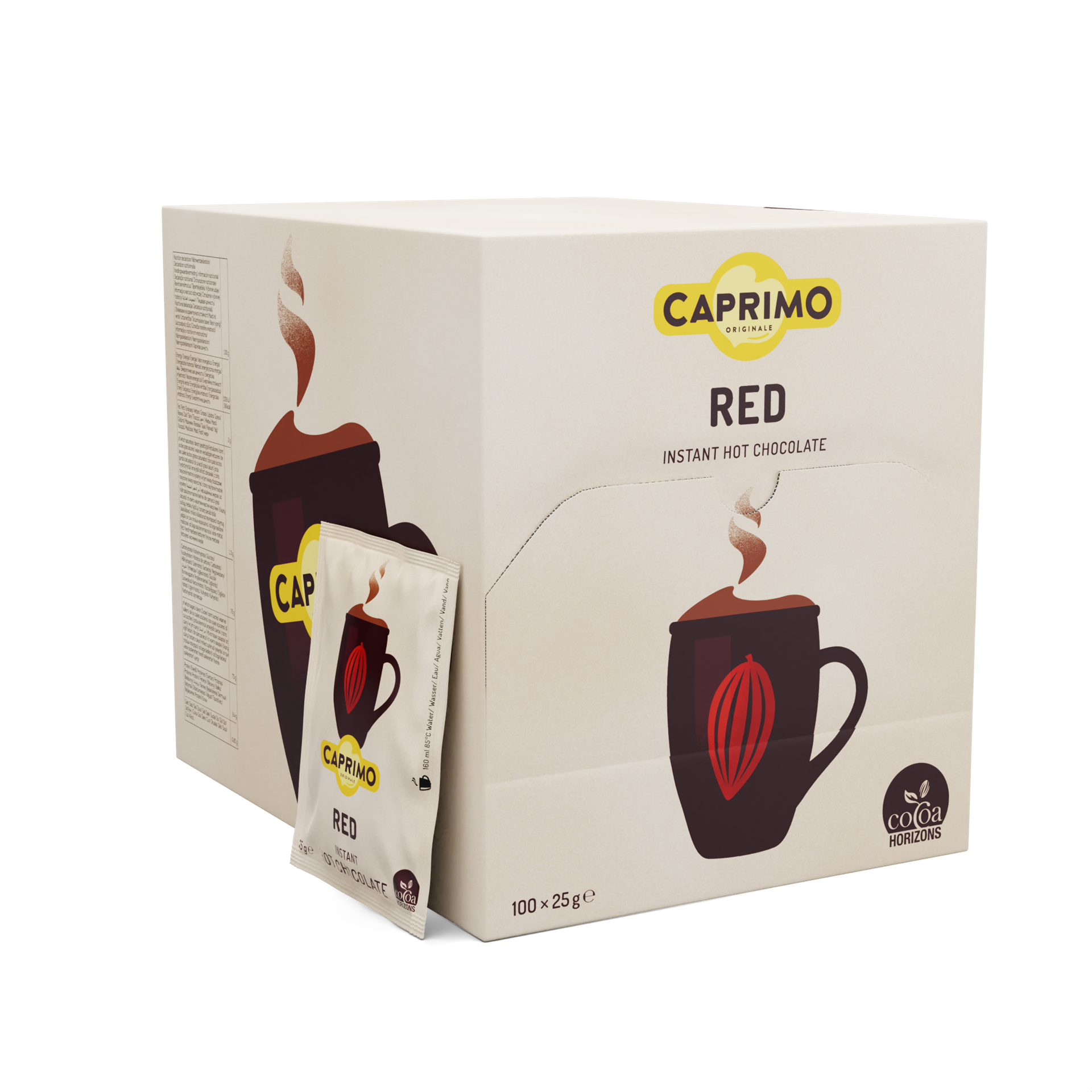 En klassisk chokoladedrik som er lavet af de bedste råvarer, der giver produktet en uovertruffen smag og duft af kakao. De afmålte Caprino breve 25 g, en hygiejniske & praktisk løsning hvor der er begrænset forbrug eller selvbetjening ved tilberedningen af produktet. Opløses nemt i varm vand.